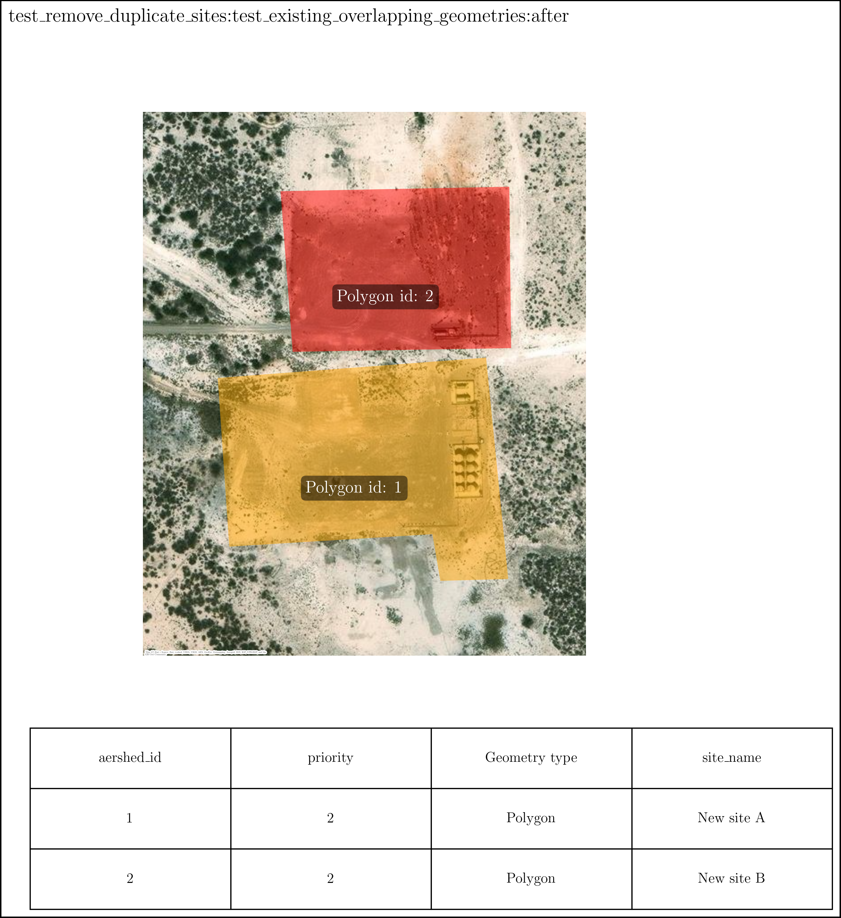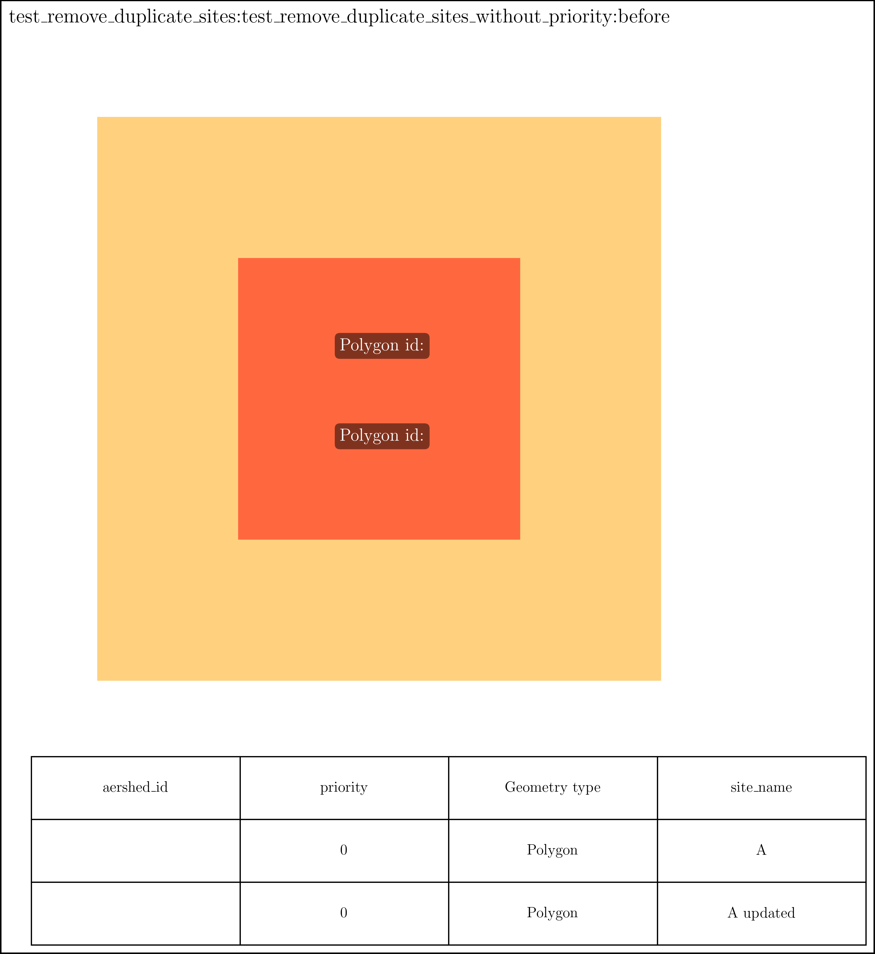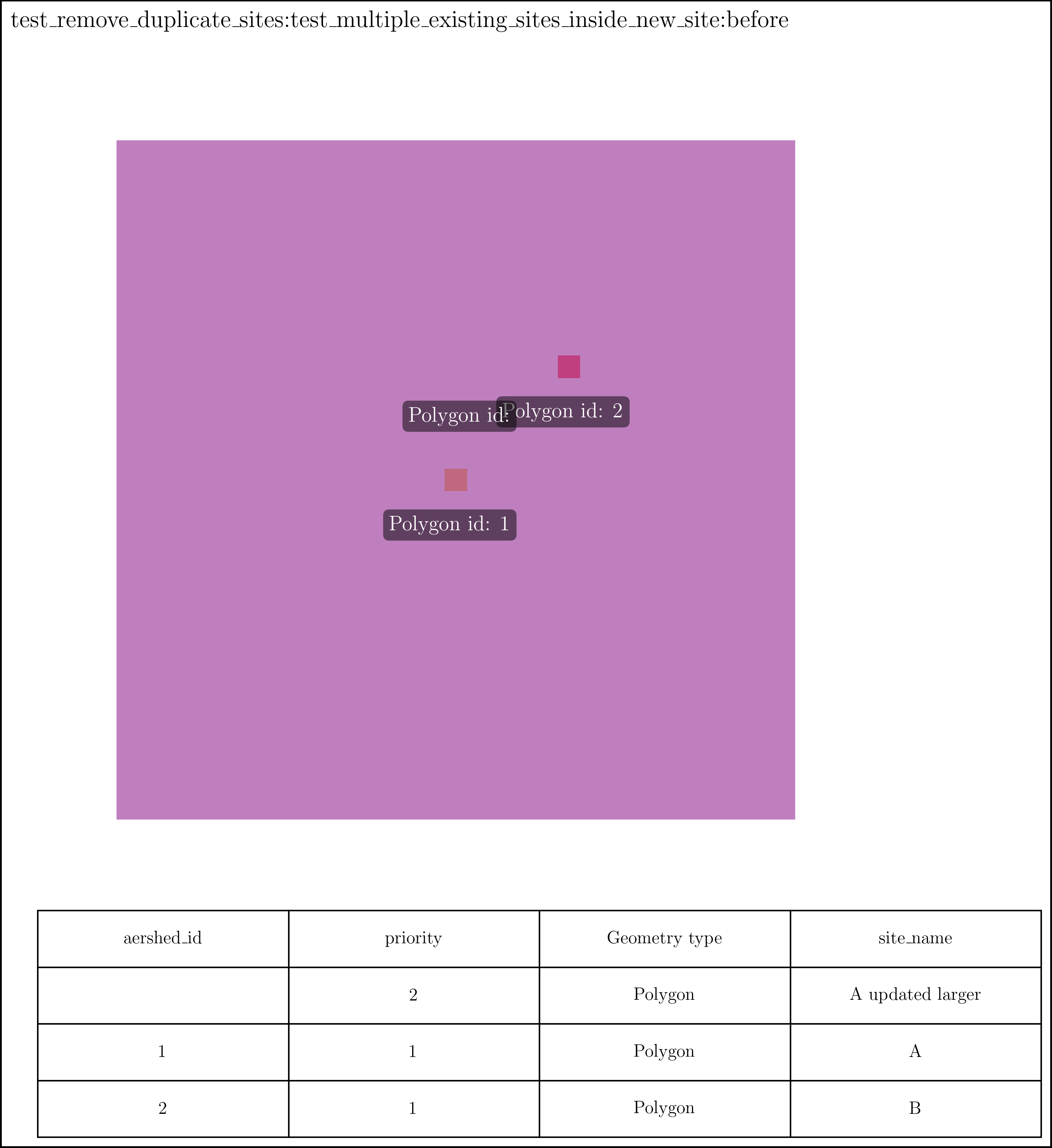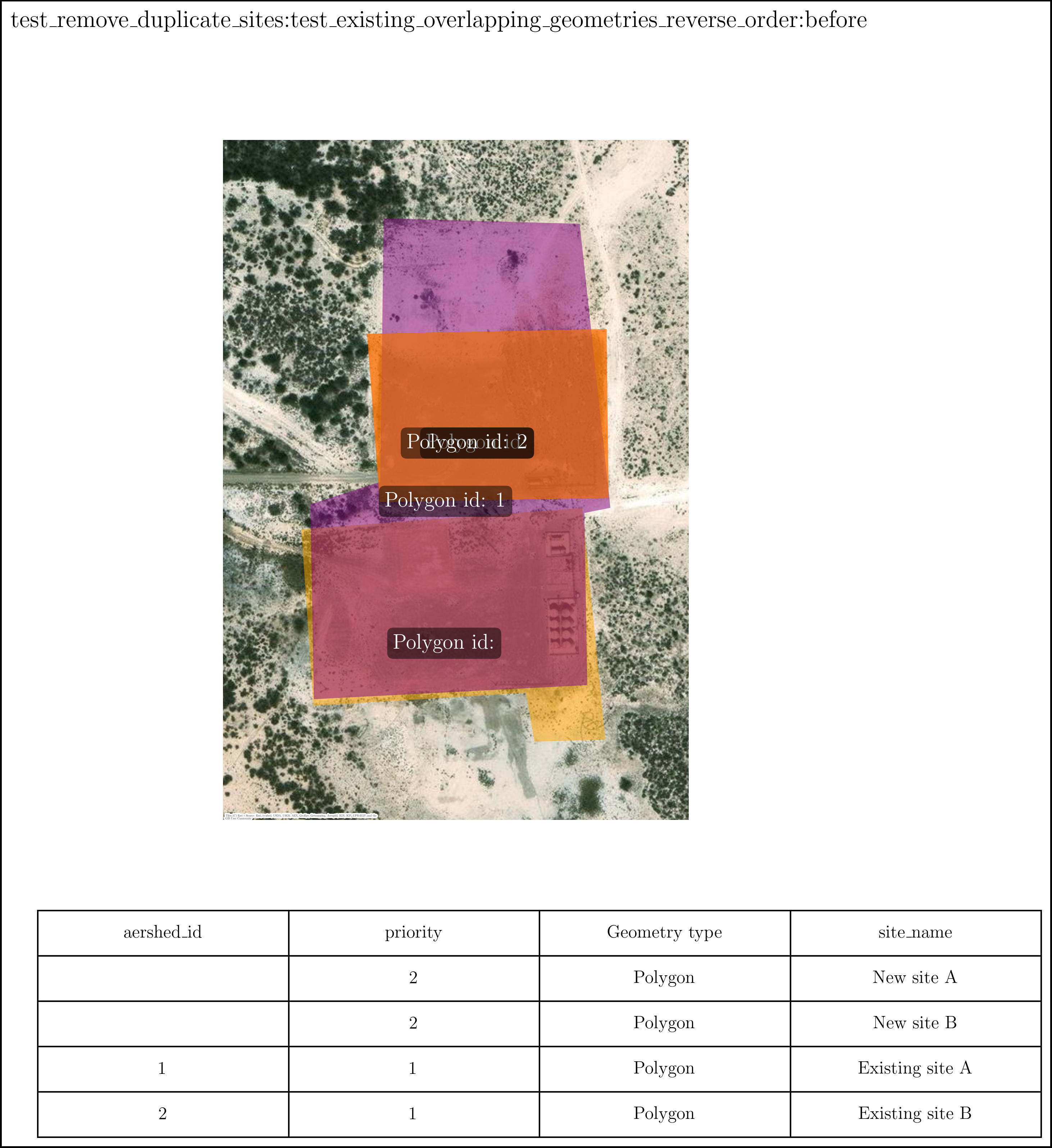 In this case we have two sites with the same geometry but different priorities. We should combine them into a single site. The metadata and site_name from the higher priority site should be chosen.