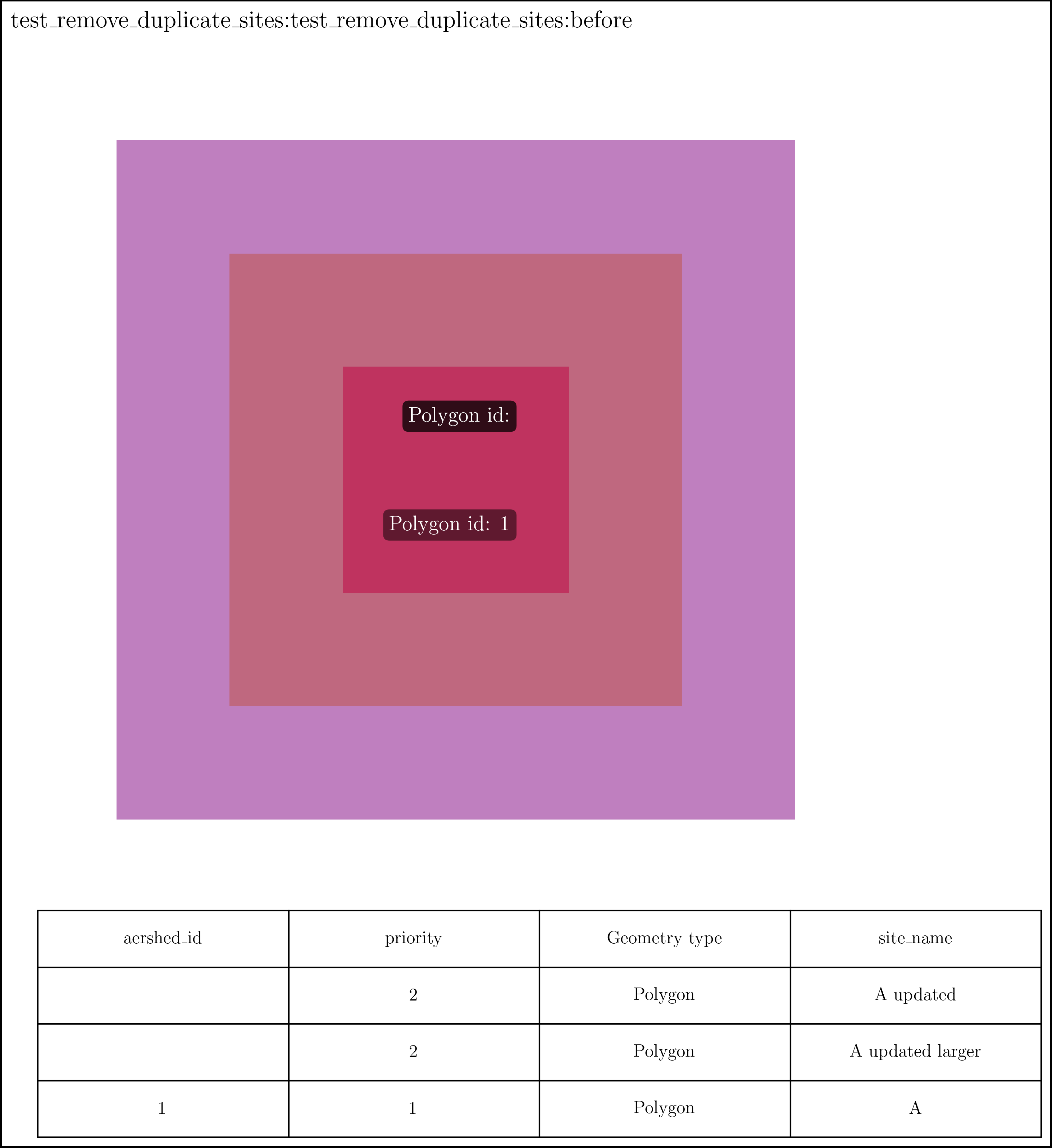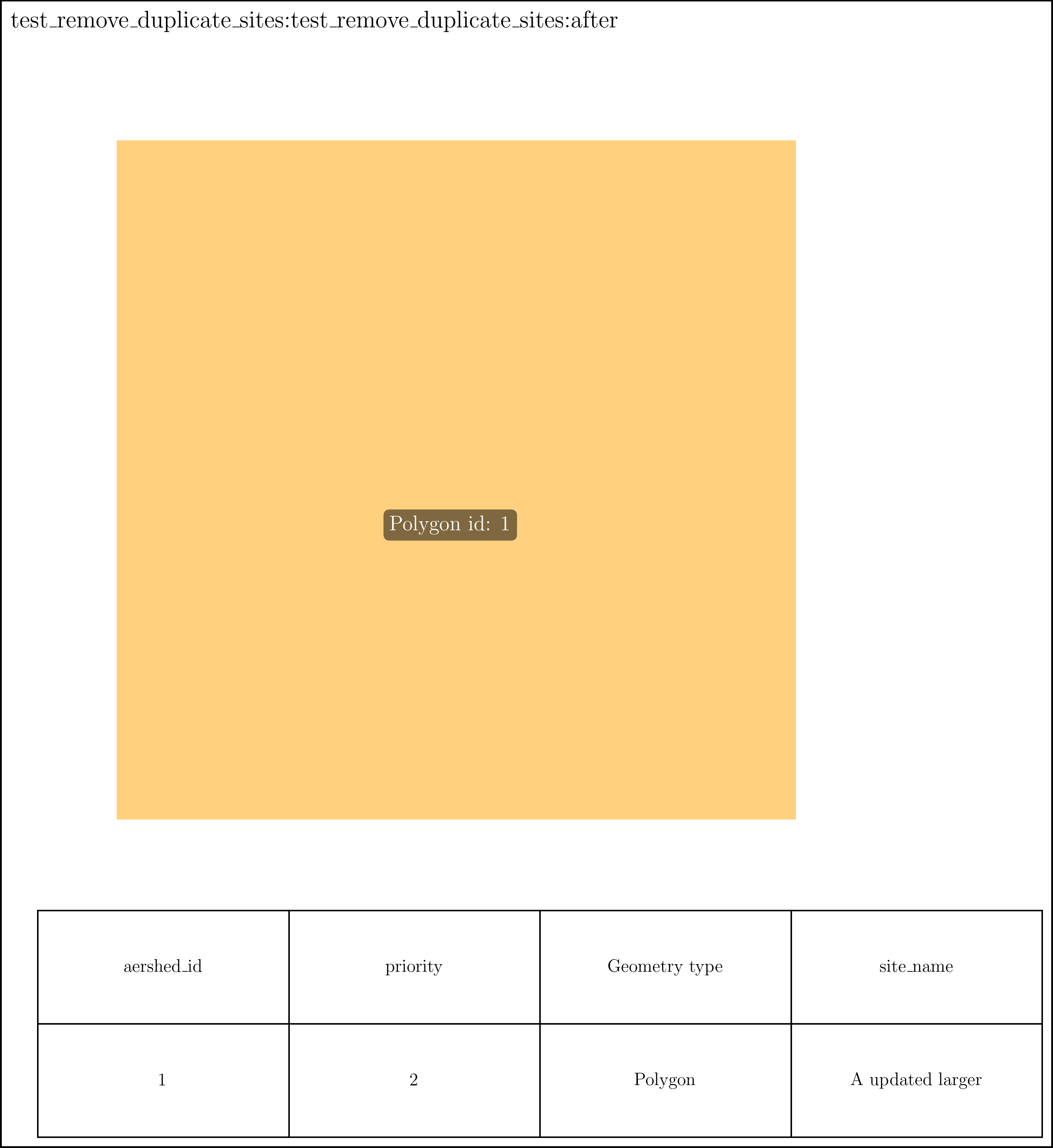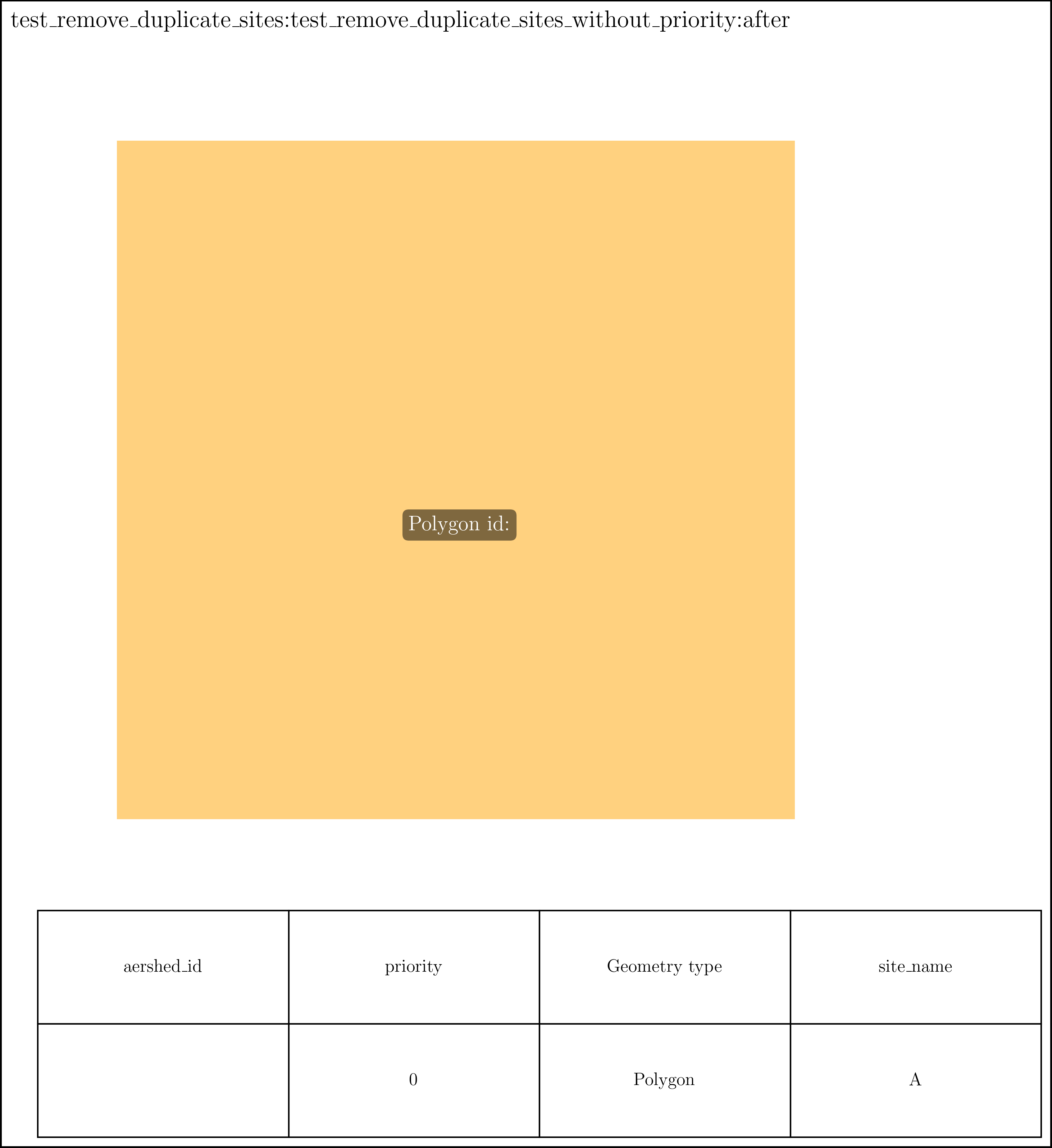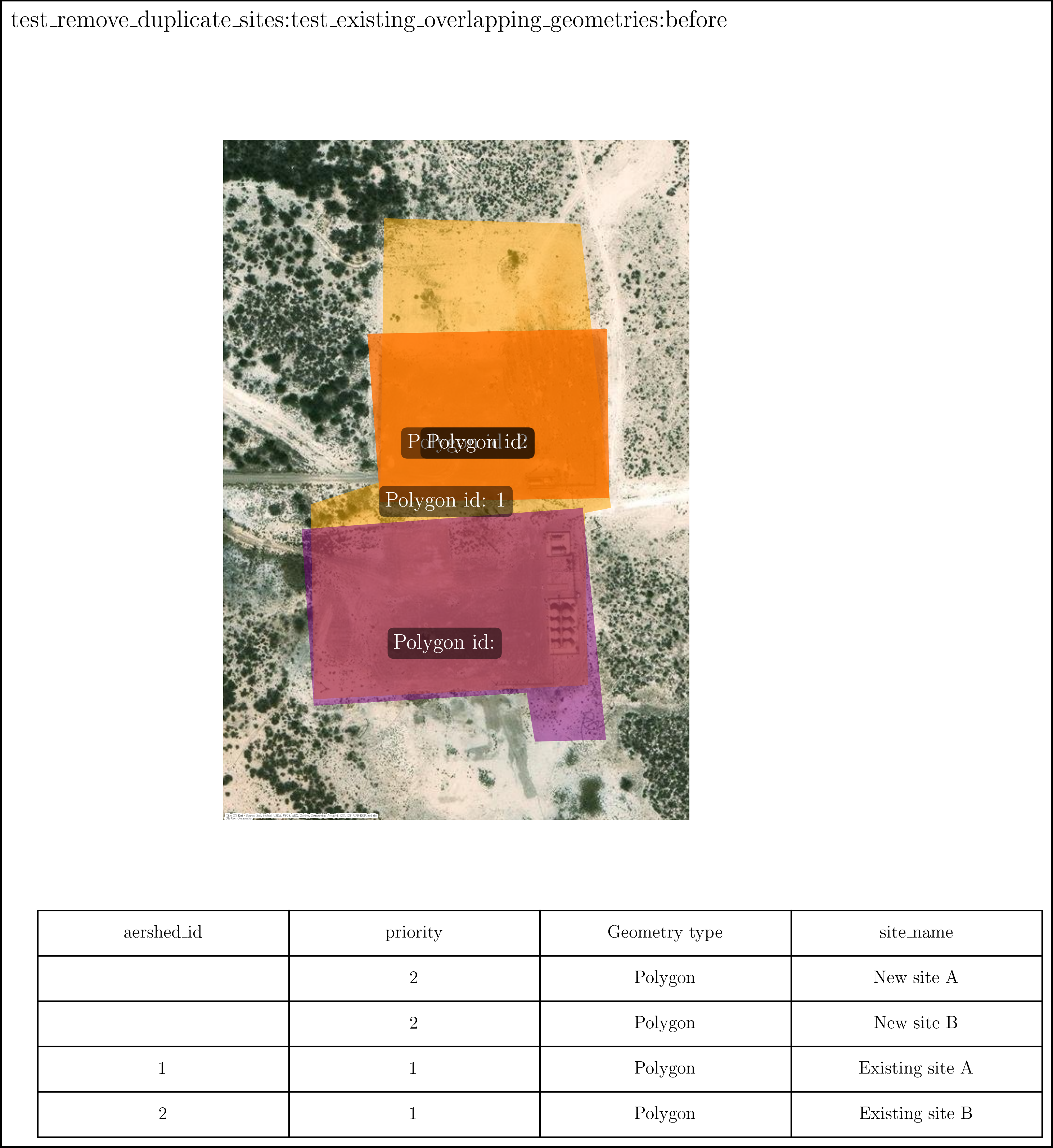 In this case we have two sites with the same geometry but different priorities. We should combine them into a single site. The metadata and site_name from the higher priority site should be chosen.