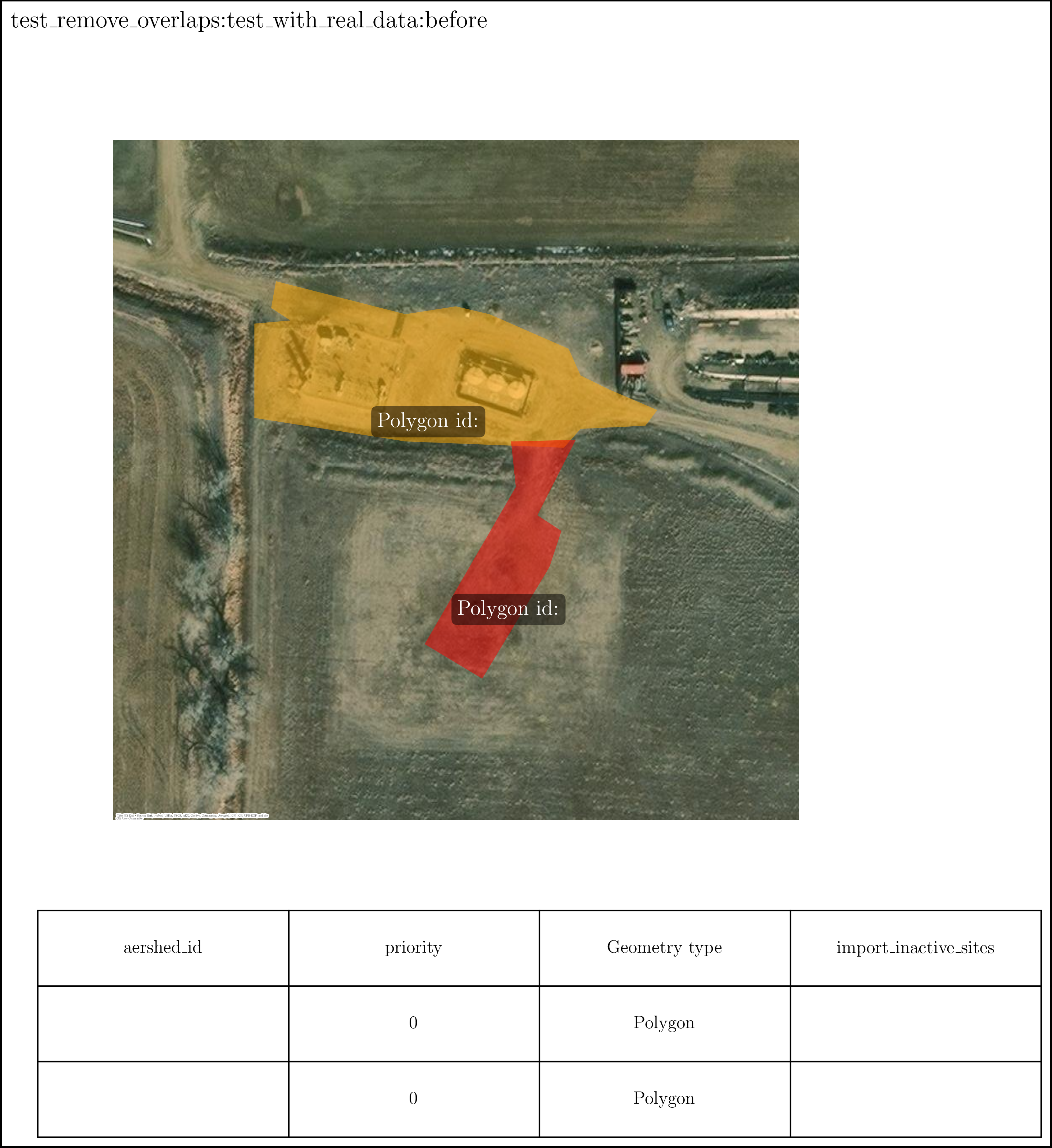 This real world example shows two polygons that have a very small overlap. This test demonstrates how we can remove the overlapping section by cutting off part of one polygon.