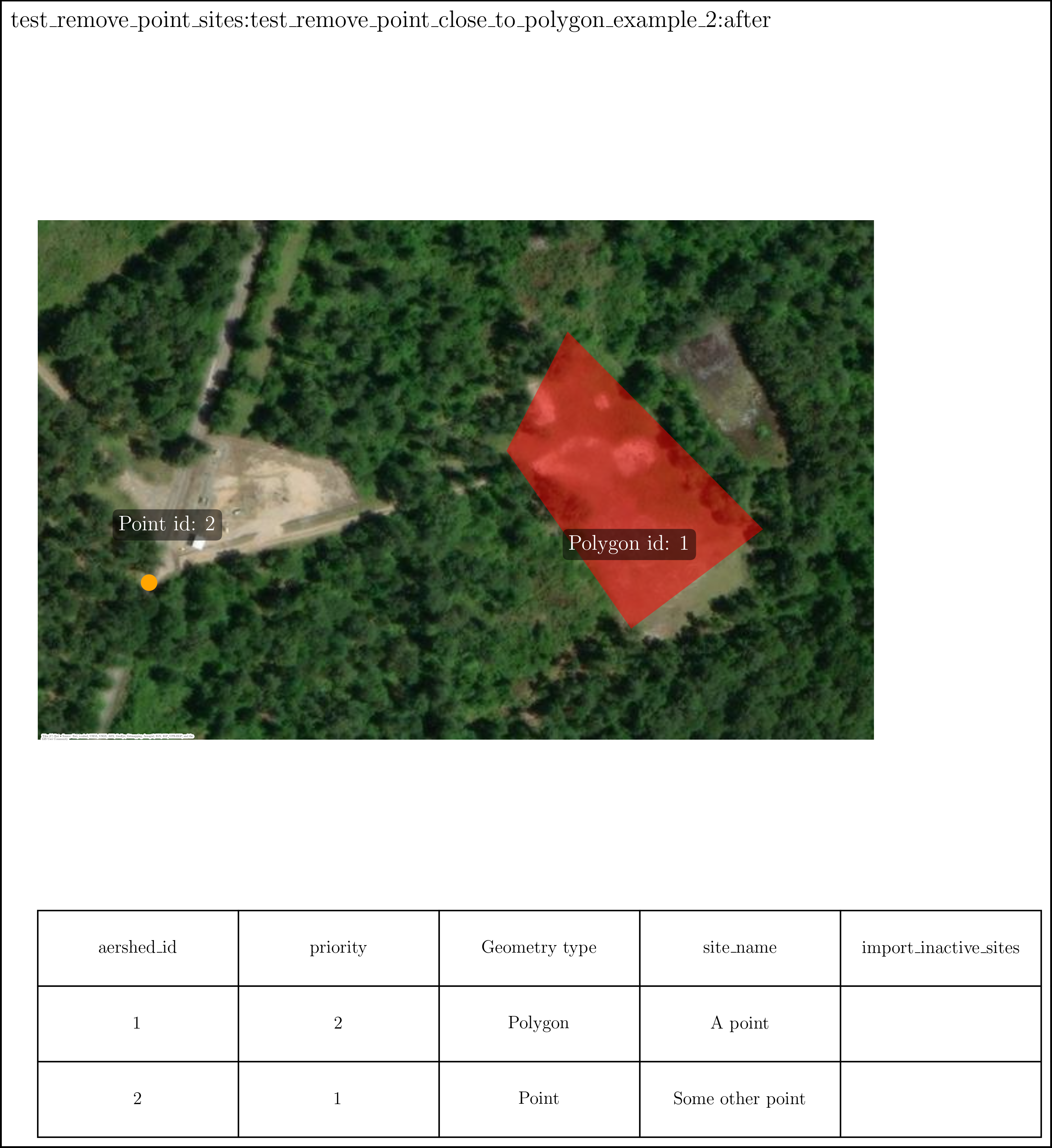 In this case we have a point which is removed due to being close with identical name, but also would be valid for removal due to just being close. So we check that these two methods being in play do not cause any issues in the program.
